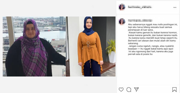 Saya tahu di Indonesia banyak sekali perempuan yang sedang berjuang dengan berat badan mereka.